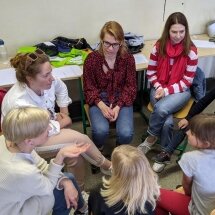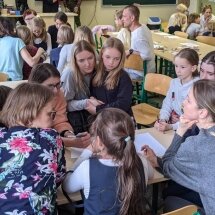 Taip pat ši lektorė dirba su progimnazijos mokiniais, veda klasės bendruomenės sutelktumo užsiėmimus (mokiniai, tėvai ir klasės auklėtoja), iki šiol įvyko du susitikimai su 3a, 6t1 nuotoliniu būdu, ir gegužės 12 dieną 2c klasės bendruomenės užsiėmimas tiesioginiu būdu. Kartu su psichologe Asta Blande klasės mokiniai ir tėvai leidosi į savęs ir kito pažinimo kelionę. Tėveliams buvo puiki galimybė pamatyti visus vaikus vienoje erdvėje, kai jie dirba, bendrauja, tariasi. Stebėdami savo ir kitų vaikų elgseną, matydami specialisto reakcijas galėjo analizuoti vaiko stiprybes ir pokyčių reikalaujančias sritis. Viena svarbiausių vakaro užduočių – komandinis darbas, kurio metu vaikai kartu su tėvais išskyrė, ką klasėje turi vertingo, ko reikėtų atsisakyti, ką naujo sukurti. Lentoje atsidūrė daug svarbių ir reikalingų pamąstymų ir idėjų, kurias psichologė apibendrino bei išskyrė keletą krypčių, kurios svarbios padedant vaikams stiprinti sutelktumo, pagarbos sau ir kitam jausmus, ypatingai – susitarimų ir ribų klausimus. Šį mėnesį tokio pobūdžio susitikimas yra numatytas 7a3 klasei.