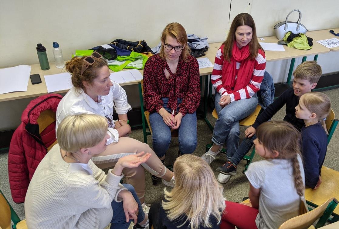 Taip pat ši lektorė dirba su progimnazijos mokiniais, veda klasės bendruomenės sutelktumo užsiėmimus (mokiniai, tėvai ir klasės auklėtoja), iki šiol įvyko du susitikimai su 3a, 6t1 nuotoliniu būdu, ir gegužės 12 dieną 2c klasės bendruomenės užsiėmimas tiesioginiu būdu. Kartu su psichologe Asta Blande klasės mokiniai ir tėvai leidosi į savęs ir kito pažinimo kelionę. Tėveliams buvo puiki galimybė pamatyti visus vaikus vienoje erdvėje, kai jie dirba, bendrauja, tariasi. Stebėdami savo ir kitų vaikų elgseną, matydami specialisto reakcijas galėjo analizuoti vaiko stiprybes ir pokyčių reikalaujančias sritis. Viena svarbiausių vakaro užduočių – komandinis darbas, kurio metu vaikai kartu su tėvais išskyrė, ką klasėje turi vertingo, ko reikėtų atsisakyti, ką naujo sukurti. Lentoje atsidūrė daug svarbių ir reikalingų pamąstymų ir idėjų, kurias psichologė apibendrino bei išskyrė keletą krypčių, kurios svarbios padedant vaikams stiprinti sutelktumo, pagarbos sau ir kitam jausmus, ypatingai – susitarimų ir ribų klausimus. Šį mėnesį tokio pobūdžio susitikimas yra numatytas 7a3 klasei.