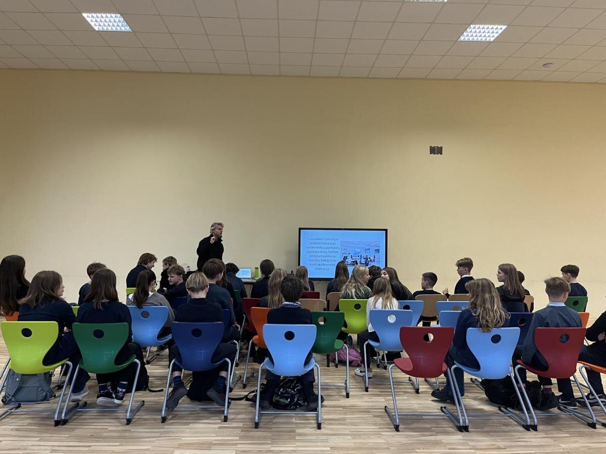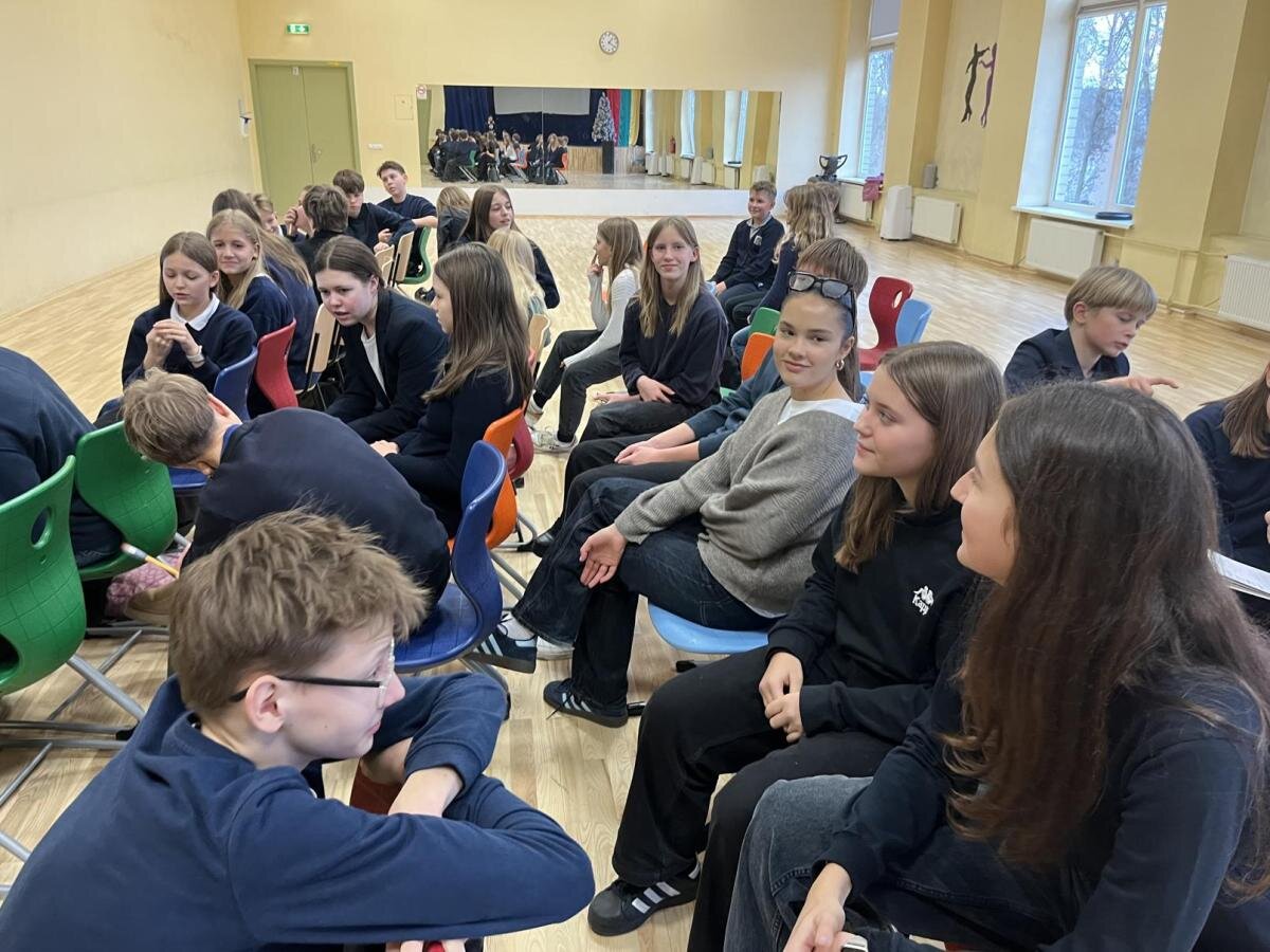 Ką gali mokiniai? Kokias problemas jie yra pajėgūs išspręsti? Kokius projektus geba sukurti ir įgyvendinti? Į šiuos ir panašius klausimus atsakinėjo Mokinių savivaldos nariai gruodžio 10 d. vykusiuose lyderystės mokymuose. Mokymus vedė Kipras Šumskas, tarptautinės jaunųjų kūrėjų akceleravimo programos „Vista“ įgyvendinimo Lietuvoje projekto vadovas. Jo padedami progimnazijos Mokinių savivaldos nariai dalijosi idėjomis apie jų pačių pastebėtų mokyklos problemų sprendimo būdus ir sužinojo, ką jų amžiaus mokiniai prasmingo ir įdomaus veikia kitose pasaulio šalyse.