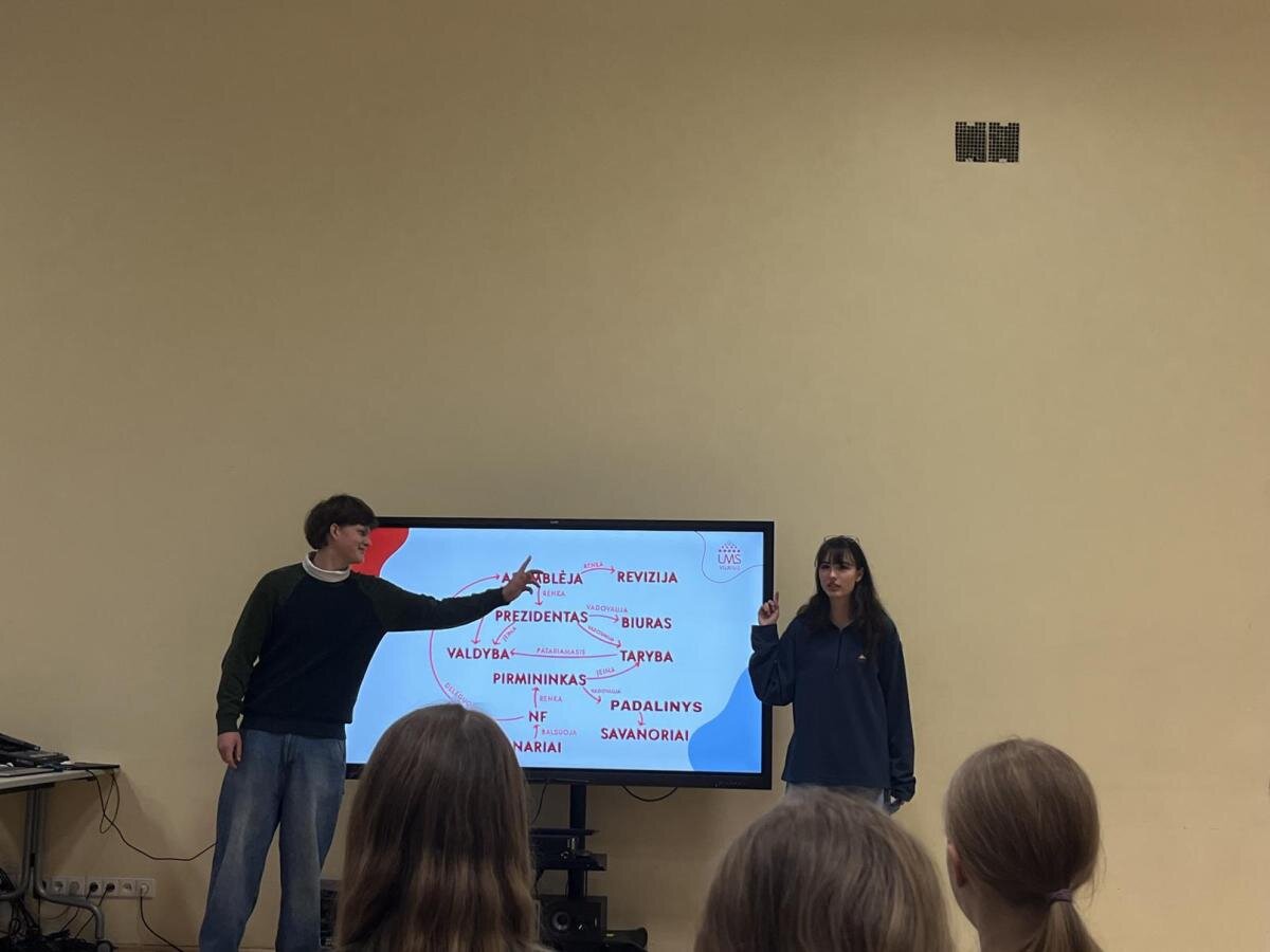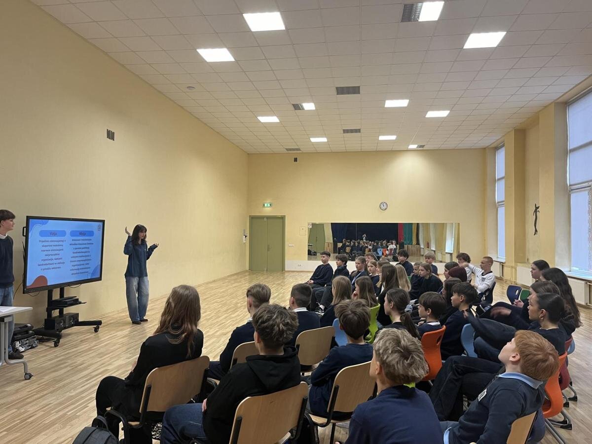 Siekiant užtikrinti kokybišką ir įtraukią Mokinių Savivaldos veiklą, kovo 24 dieną jos nariai dalyvavo įdomioje paskaitoje apie Lietuvos Moksleivių Sąjungą. Mokiniai ne tik sužinojo kas yra LMS ir kaip ji veikia, bet ir gavo naudingos informacijos apie tai, kaip LMS gali padėti mokiniams įgyvendinti savo idėjas. Paskaitos metu mokiniai pasidalino savo nuomone apie įvairius jiems svarbius mokyklos klausimus, išbandė ,,vadovų klubo” formatą, dalyvavo viktorinoje.