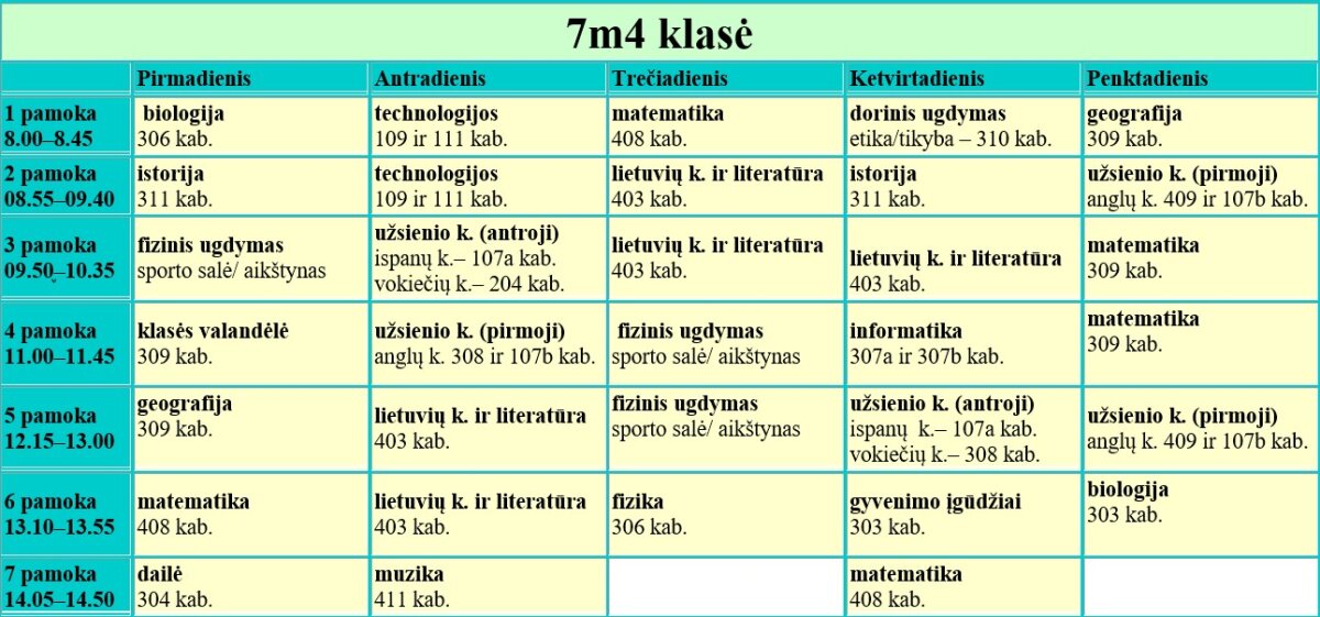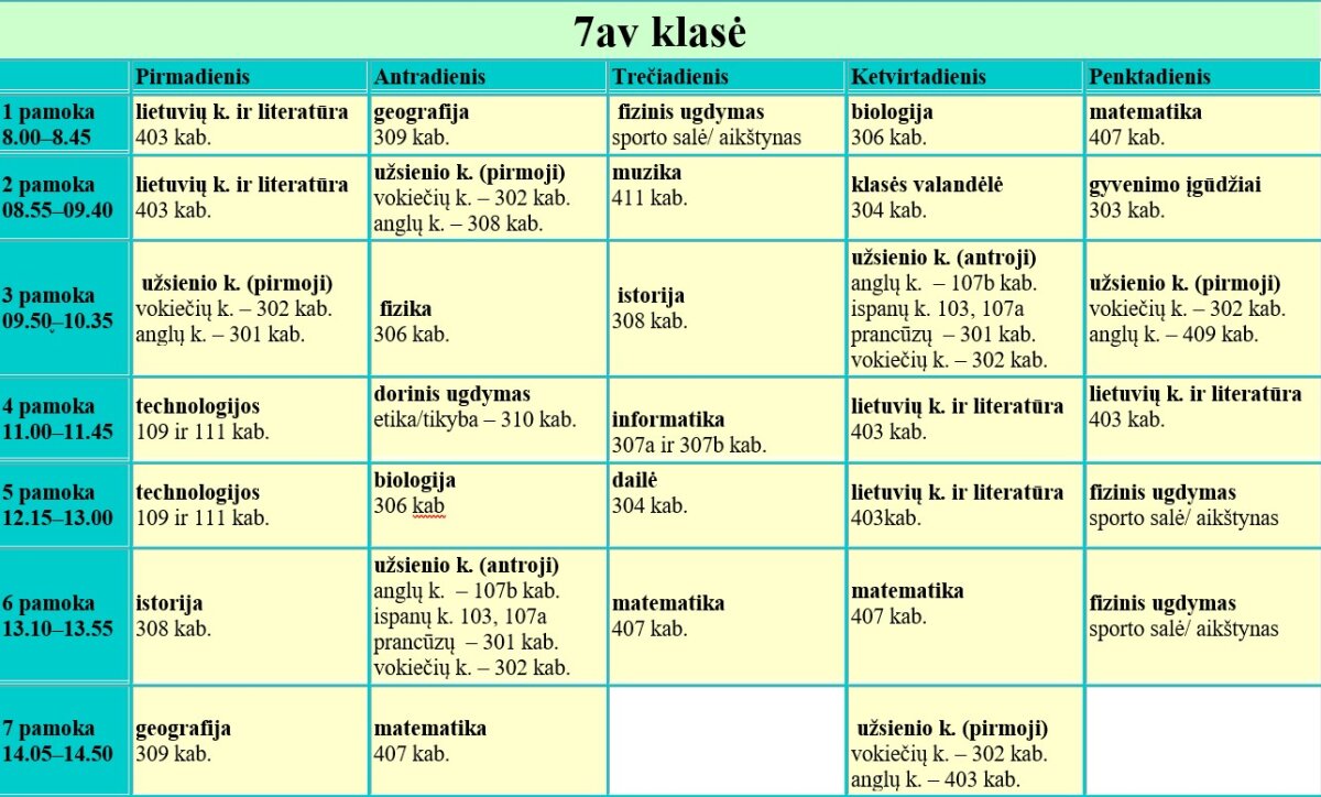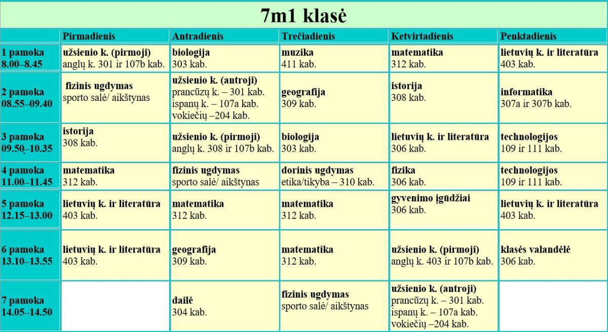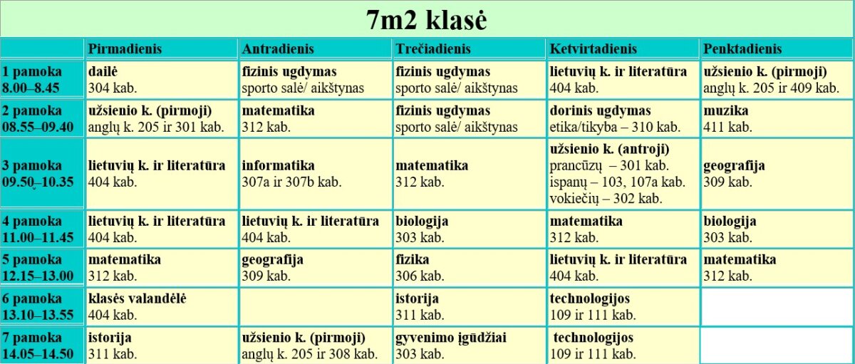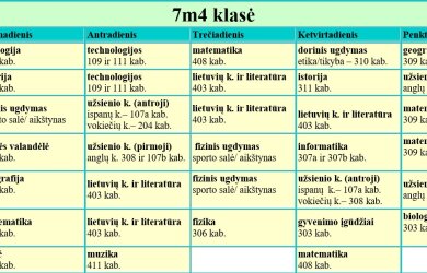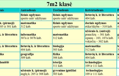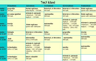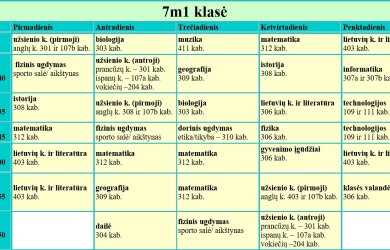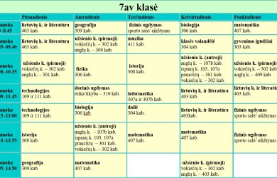 7 klasės pamokų tvarkaraščiai
